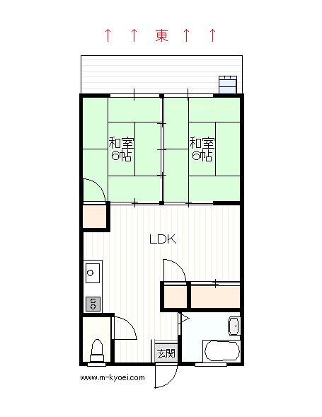 清水アパート東向き 6号 約15u・約4坪・鉄骨造2階建 |