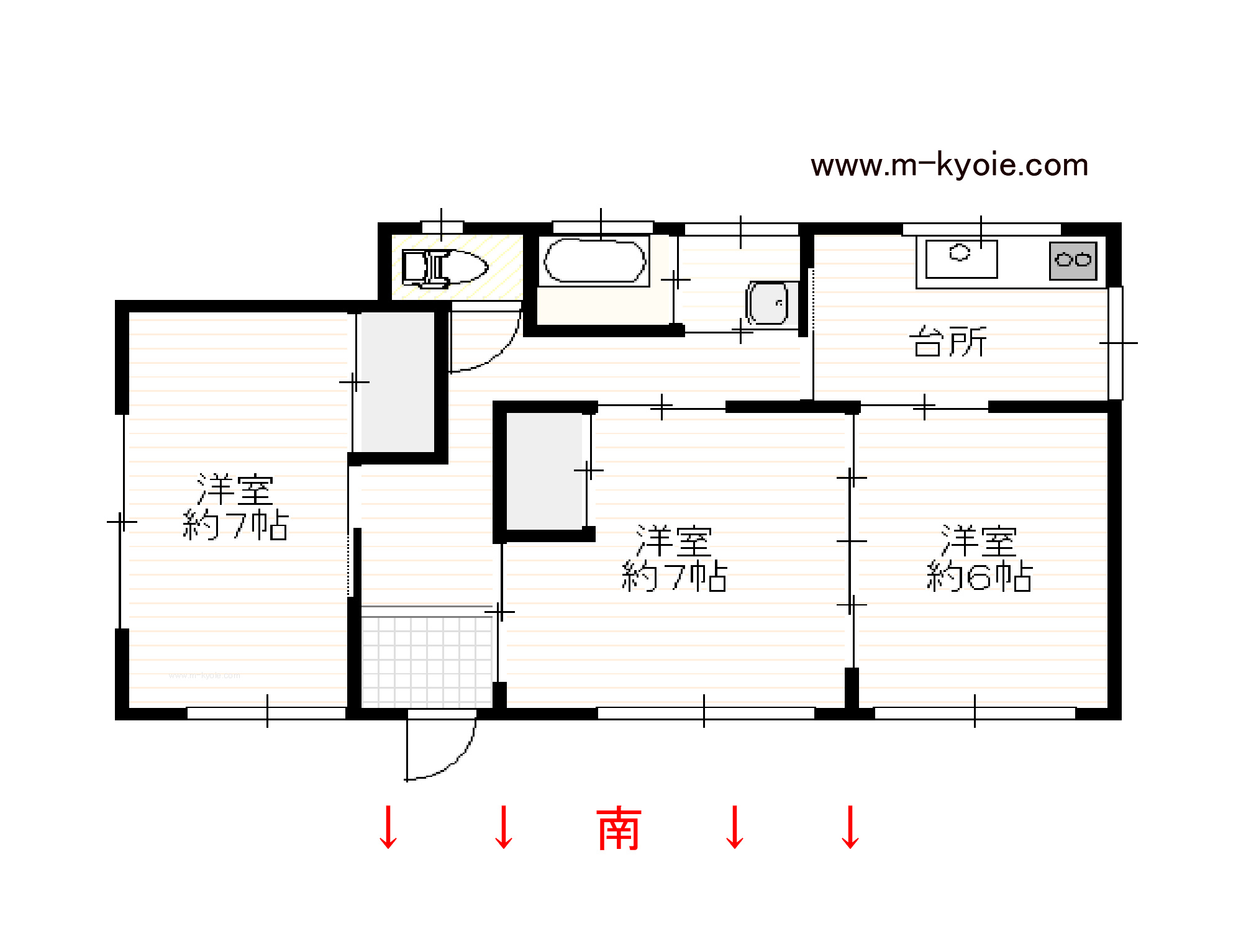 ニトリモール近く!ファミリー向け!! ファミリー向けの間取りです。洗面所が広いのでサイズの大きな洗濯機も設置できそうです。トイレも広めです。東南の角部屋で各部屋に窓があるので日当たりと風通しが良いです。宮崎南バイパス、東九州自動車道宮崎インター、源藤交差点近くです。ニトリモールにも歩いて買物に行けます。契約時に必要な初期費用は、住宅総合保険料8,000円のみ!敷金0円、礼金0円、仲介手数料0円、前家賃0円、賃貸保証料0円です。 |