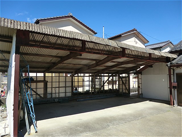 | その他 | 古民家に興味があるという方にお薦めです!天井や柱など趣のある貸家です。6帖と8帖の和室は本間サイズの畳ですので広く感じると思います。敷地は広く駐車場は屋根付きですのでお車を大切にされている方には嬉しいですね(^o^)貸家の入り口の道が狭いので運転に自信がある方であればよいと思います。※車庫は全部使用可能ではなく、一台分家主様の来客用に確保する必要があります。